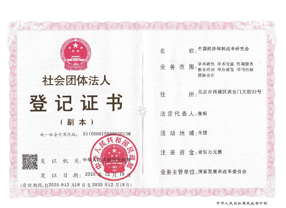 1983年2月,經國務院領導批準成立中國經濟體制改革研究會(簡稱中國體改研究會,英文為China Society of Economic Reform,簡寫CSER);1991年中國經濟體制改革研究會正式向民政部進行了社團登記,成為了國家一級學會(社團代碼50000301-3);
