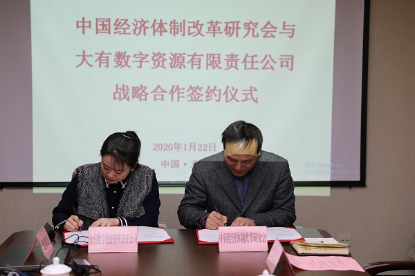 2020年1月22日上午,中國經(jīng)濟體制改革研究會與理事單位大有數(shù)字資源有限責任公司戰(zhàn)略合作備忘錄簽署儀式在我會會議室舉行。我會會長彭森、常務副會長兼秘書長趙艾、大有公司總經(jīng)理張長江等見證簽約,并就新形勢下如何充分發(fā)揮各自優(yōu)勢,拓寬合作領域,實現(xiàn)資源共享等方面的事宜再次進行了充分交流,進一步深化了合作共識。簽署儀式由趙艾主持。