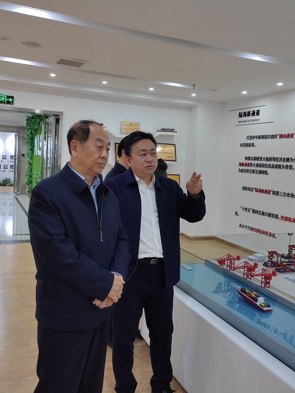 調(diào)研期間,趙艾和調(diào)研組一行還深入重慶國(guó)際物流樞紐展館、陸海新通道運(yùn)營(yíng)有限公司等實(shí)地了解情況,聽(tīng)取意見(jiàn)。中新示范項(xiàng)目管理局副局長(zhǎng)唐衛(wèi)東等陪同調(diào)研。