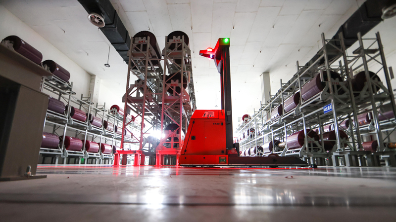 5月17日,AGV(自動導引運輸車)穿行在貴州首個5G全連接工廠的部件生產區(qū)內。新華社記者 歐東衢 攝
