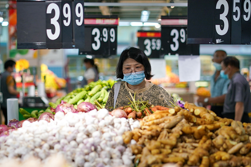 市民在江蘇省無(wú)錫市經(jīng)開(kāi)區(qū)華潤(rùn)萬(wàn)家超市購(gòu)物(2022年7月7日攝)。江蘇省無(wú)錫市在做好疫情防控的同時(shí),積極制定相關(guān)方案,制作城市保供地圖,組織大型商超、市場(chǎng)正常運(yùn)營(yíng),全力保供穩(wěn)價(jià),端穩(wěn)市民“菜籃子”。新華社記者 李博 攝
