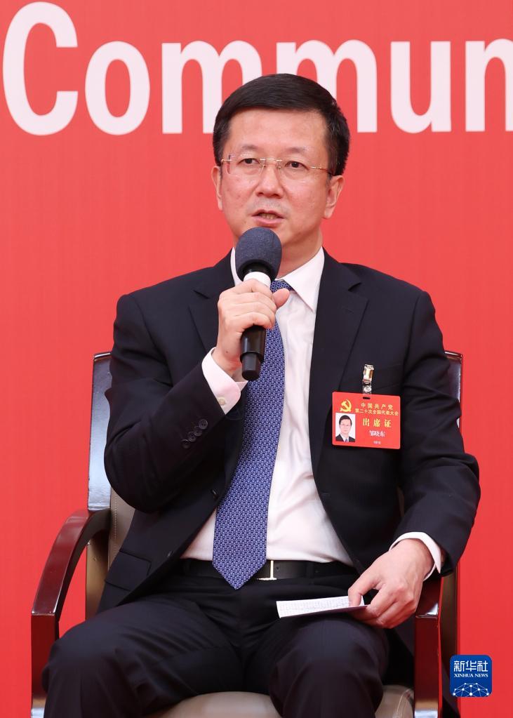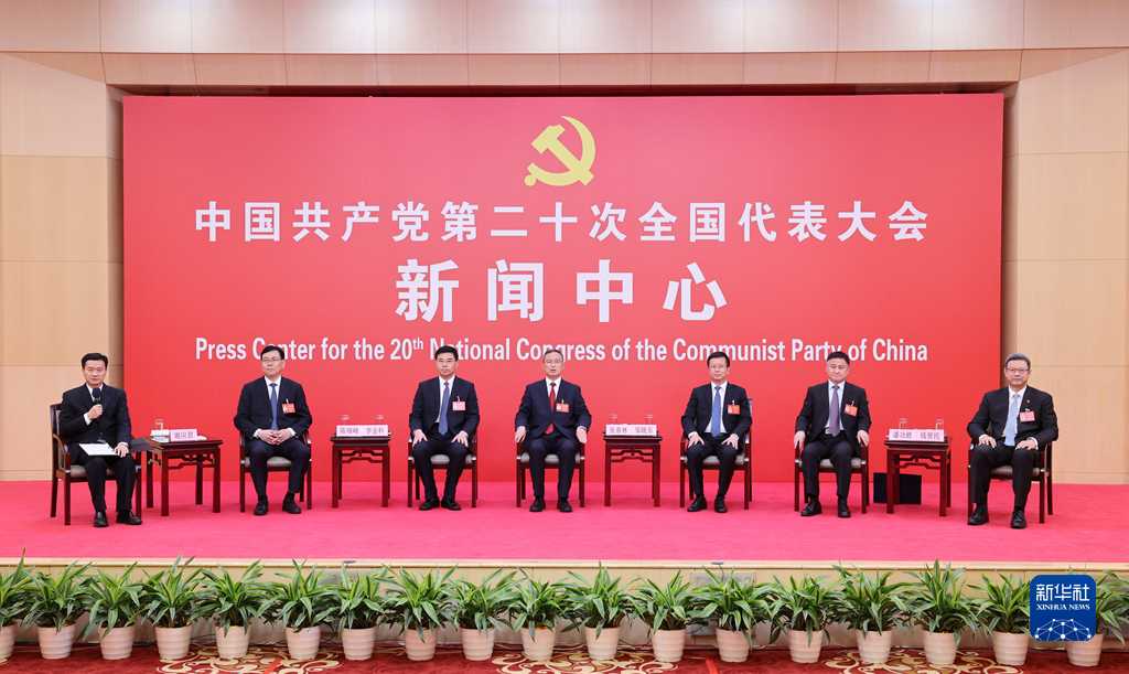 10月20日,中國共產(chǎn)黨第二十次全國代表大會新聞中心舉行集體采訪。青海、寧夏、新疆、中央和國家機關(guān)、中央金融系統(tǒng)、中央企業(yè)系統(tǒng)(在京)代表團新聞發(fā)言人出席,介紹代表團學(xué)習(xí)討論二十大報告情況,并回答記者提問。新華社記者 張玉薇 攝