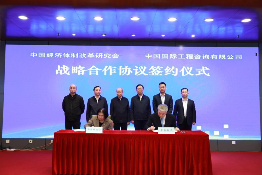 在彭森與茍護生等領導同志見證下,我會副會長李青與中咨公司副總經(jīng)理竇皓代表雙方簽訂戰(zhàn)略協(xié)議。協(xié)議明確,雙方將圍繞智庫建設、重大課題、專題研究、高端會議、共建共享專家?guī)臁㈤_展培訓等方面加強合作。