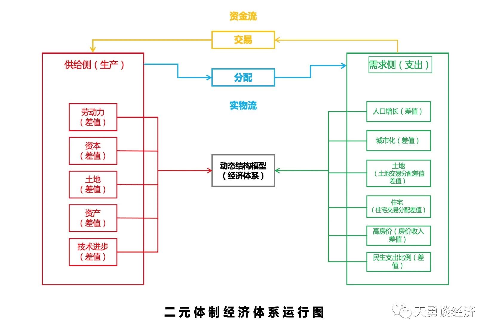 據(jù)此,如上圖所示,與發(fā)展中國家、成熟市場經(jīng)濟國家、瞬時體制轉(zhuǎn)軌國家三類標準經(jīng)濟體不一樣的是,筆者以二元體制差值為主分析變量,建立二元體制供給與需求兩方面均衡的經(jīng)濟運行和增長函數(shù)。