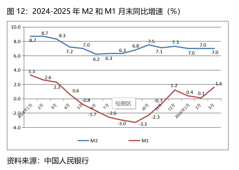 (三)廣義貨幣供應(yīng)量(M2)增速比上年全年和上年同期均保持回落,狹義貨幣供應(yīng)量(M1)增長仍比較緩慢。3月末,廣義貨幣供應(yīng)量同比增長7.0%,比上年年底增長7.3%回落了0.3個百分點,比上年同期增長8.3%回落1.3個百分點,并且已連續(xù)3個月保持了7.0%的增速;3月末,狹義貨幣供應(yīng)量同比增長1.6%,比上年年底增長1.2%回升了0.4個百分點,比上年同期增長2.3%回落0.7個百分點。從實現(xiàn)經(jīng)濟(jì)的穩(wěn)定增長和價格的合理上漲要求看,貨幣供應(yīng)量增速確實還是有些緩慢。