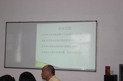 出席會議的代表有:社區(qū)行動服務中心的宋慶華、王瑞卿、綠色和平組織的徐曼、中國綠色碳匯基金會的蘇宗海、樂施會的呂美、北京地球村環(huán)境教育中心的王欣超、中國民促會綠色出行基金的費軼群和任慧、北京理工大學管理與經(jīng)濟學院的李亞教授、中國經(jīng)濟體制改革雜志社的記者張?zhí)m太等。我會《低碳發(fā)展公眾參與的政策設計》課題組成員趙迪、何林也出席了會議。