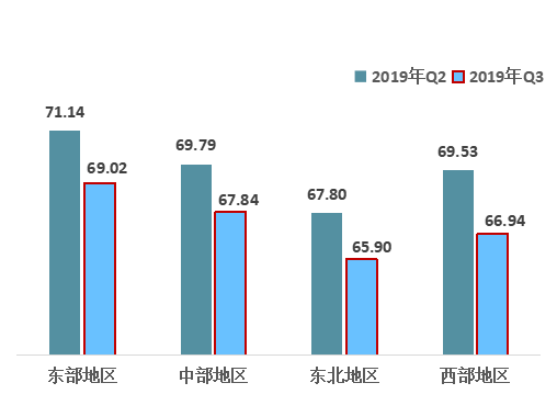 2.從四大區(qū)域來看,東部和中部地區(qū)繼續(xù)保持第一、第二,東北地區(qū)從上季度開始落后西部地區(qū)的情況沒有發(fā)生改變,而且差距呈擴(kuò)大趨勢(shì);